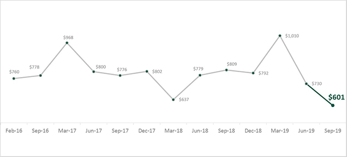 Vancouver, BC – October 28, 2019 – Despite the Bank of Canada stating it will keep interest rates stable until next year, nearly half (48%) of British Columbians say they are more concerned about their ability to repay debts than they used to be. This could be the result of declining wiggle room in household budgets. After paying all their bills and debt obligations, British Columbians say they have $601 left at the end of the month on average — a drop of $129 since June and the lowest level since tracking began in February 2016. Nearly half (45%, +1) say they are left with less than $200, including three in ten (26%) who already don’t make enough money to cover all their bills and debt obligations (+2 pts).